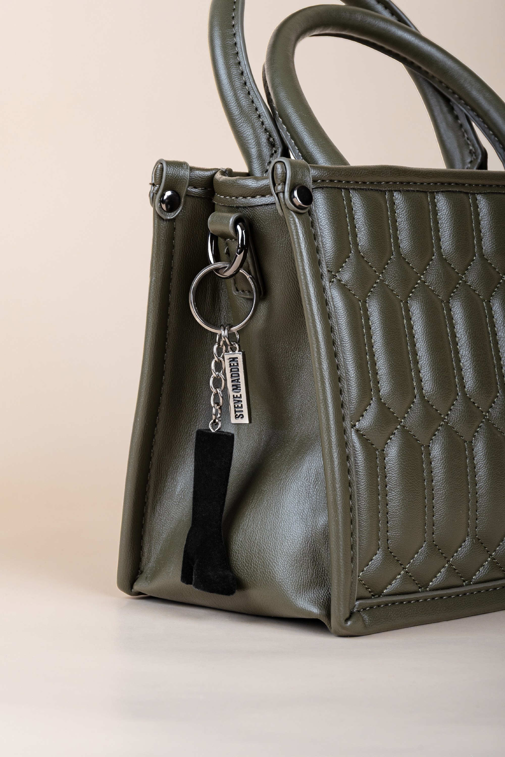 A BRANDED STEVE MADDEN METAL CHARM, adding a refined, premium touch