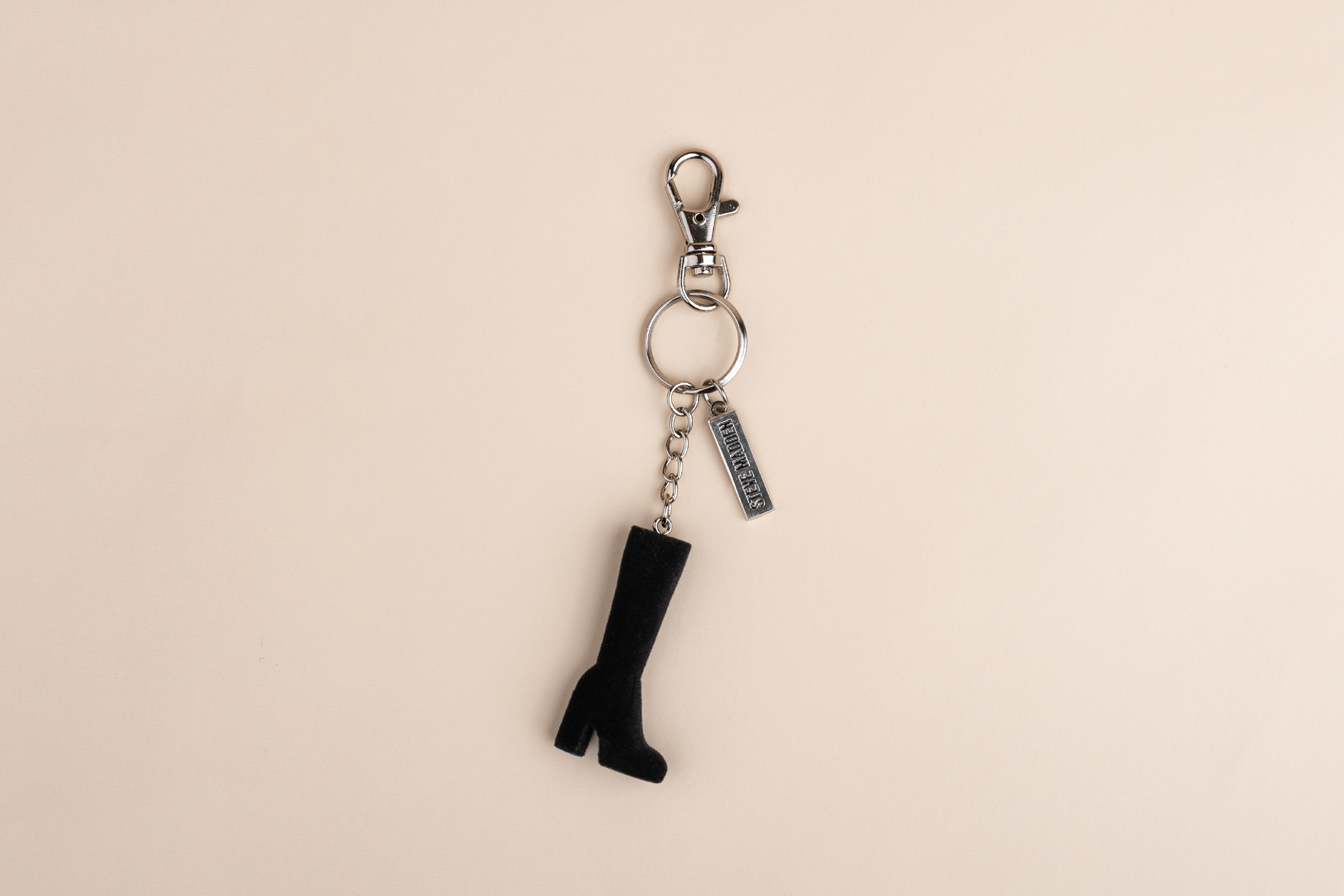 Whitestone designed a fully custom bag charm inspired by one of Steve Madden’s most iconic styles: the suede knee-high boot. The final piece featured: