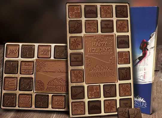 Elevate your gifting game with custom logo chocolate bars that exude luxury and sophistication. These decadent treats aren't just delicious—they're a luxurious experience with your logo or message elegantly imprinted on each bar. Ideal for corporate gifts, client appreciation, or holiday events, these custom confections offer a sumptuous way to make a lasting, high-end impression.